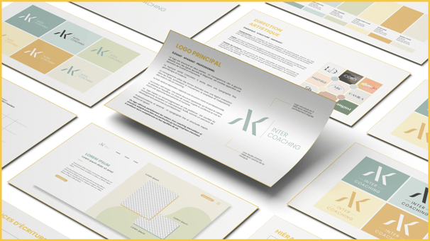 Le logo est structuré en deux parties : Un monogramme « AK » à gauche, dessiné avec des lignes épurées et élégantes. Les courbes apportent une sensation de fluidité et d’harmonie. Le logotype